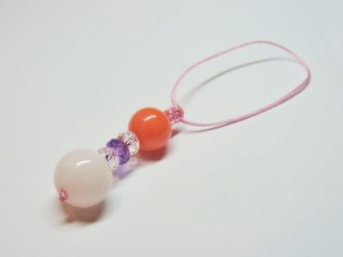 Yokoです 2014年クリスマスマーケット in あゆーむ ストラップワークショップでまたまた参加させていただきました K.Oさん ・ピンクコーラル(珊瑚)(水弱)、ボタンカット水晶、ボタンカットアメジスト、ボタンカット水晶、ピンクレースカルサイト 石の話…