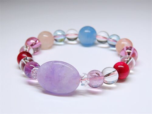 手荒れしないように とても気をつけていますね お客さまの肌の触れることを考えて ケアも忘れずに 新規ブレスレット ・アメジスト、ムーンストーン(ボタンカット)、水晶(ボタンカット特大)、ローズクォーツ、ルチルクォーツ、水晶(ボタンカット特大) …